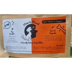 🦴 What’s Inside? Oat Flour, Brown Rice Flour, Crunchy Carrots, Cinnamon, and Coconut Oil (no salt, no sugar, no xylitol!).