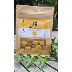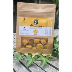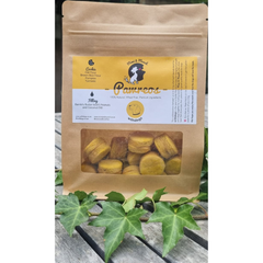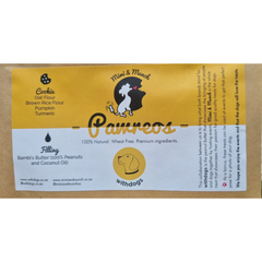 🦴 Ingredients: Oat Flour, Brown Rice Flour, Pumpkin, Chia, Turmeric, Coconut Oil, Our Homemade Peanut Butter (Bambi’s Butter – No Salt, No Sugar, No Xylitol) & 100% Beef Biltong Flakes.