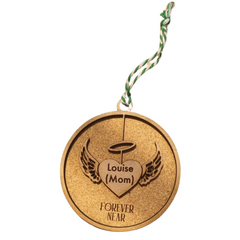Our Angelic Memory Ornament is a beautiful way to honor the memory of a loved one. Designed with delicate angel wings and a heart at the center, this round ornament allows you to add the name of the person who has passed. For a personal touch, you can also include their birth date and the date they left us. Perfect for hanging on your Christmas tree, it serves as a gentle reminder that they are always with you during the holiday season.