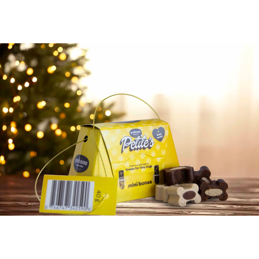 The perfect combination of treat and decoration! Probono’s Petite Semi-Moist Mini Tree Ornament is filled with soft, chewy mini treats that dogs love.