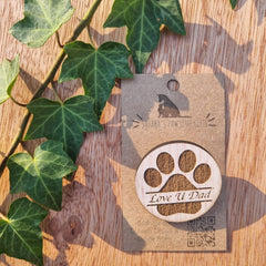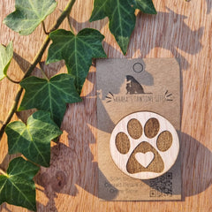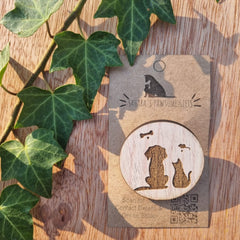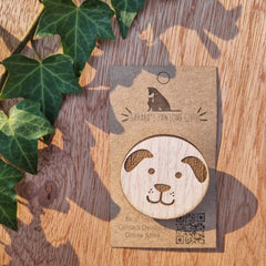 Discover our beautiful, playful 35mm wooden badges, featuring laser-engraved and cut dog and cat faces along with fun sayings.